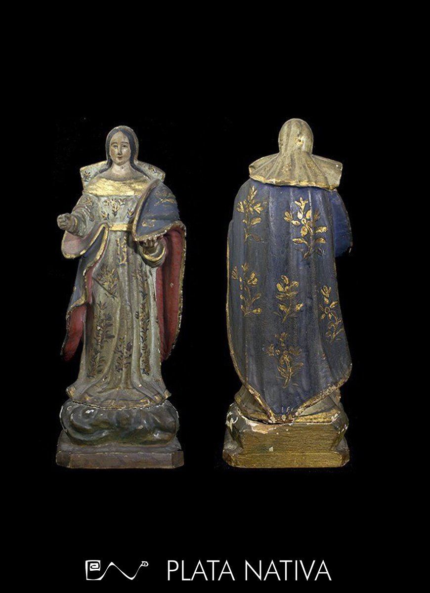 Antigua talla de Virgen. Imagen de talla completa; madera. Policromía originaria.