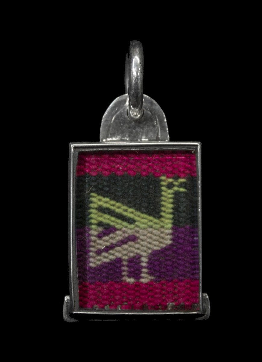 Colgante de plata 925, con tejido antiguo de colores vegetales. Ancho:3.5 cm Alto:2 cm