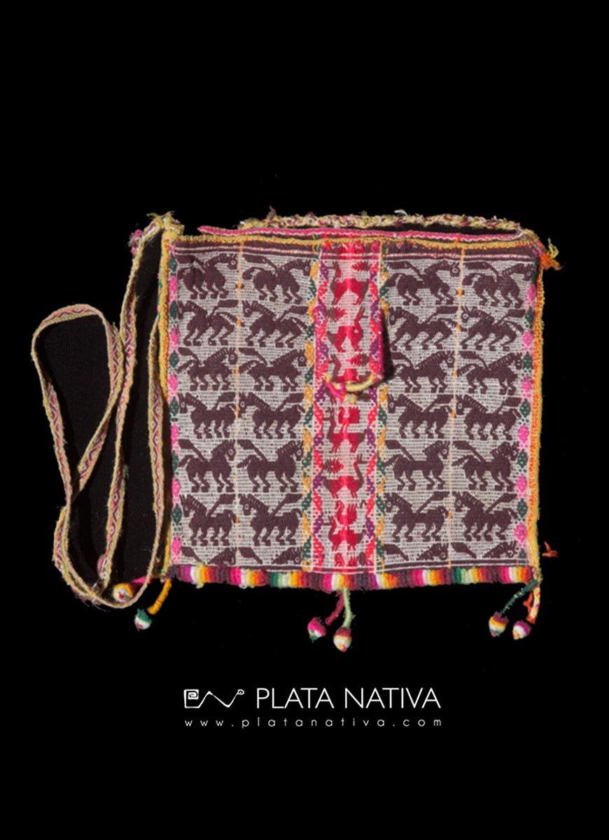 Chuspa Ceremonial donde puede apreciarse la típica iconografía de “caballos”. Estilo Textil Yampara. Departamento de Chuquisaca.