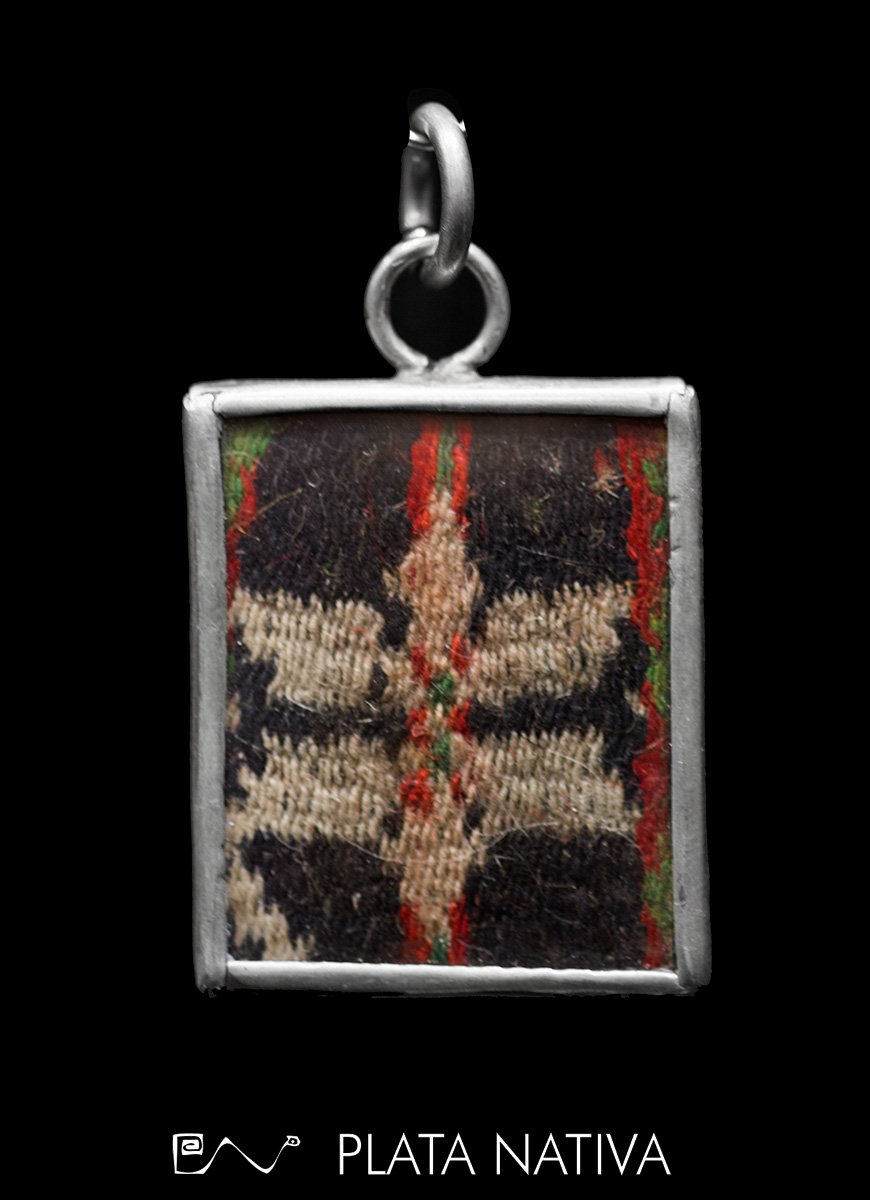 Colgante con tejido antigo¡uo. Engarzado en plata 925, hecho a mano. Medidas:3.6 x 3 cm